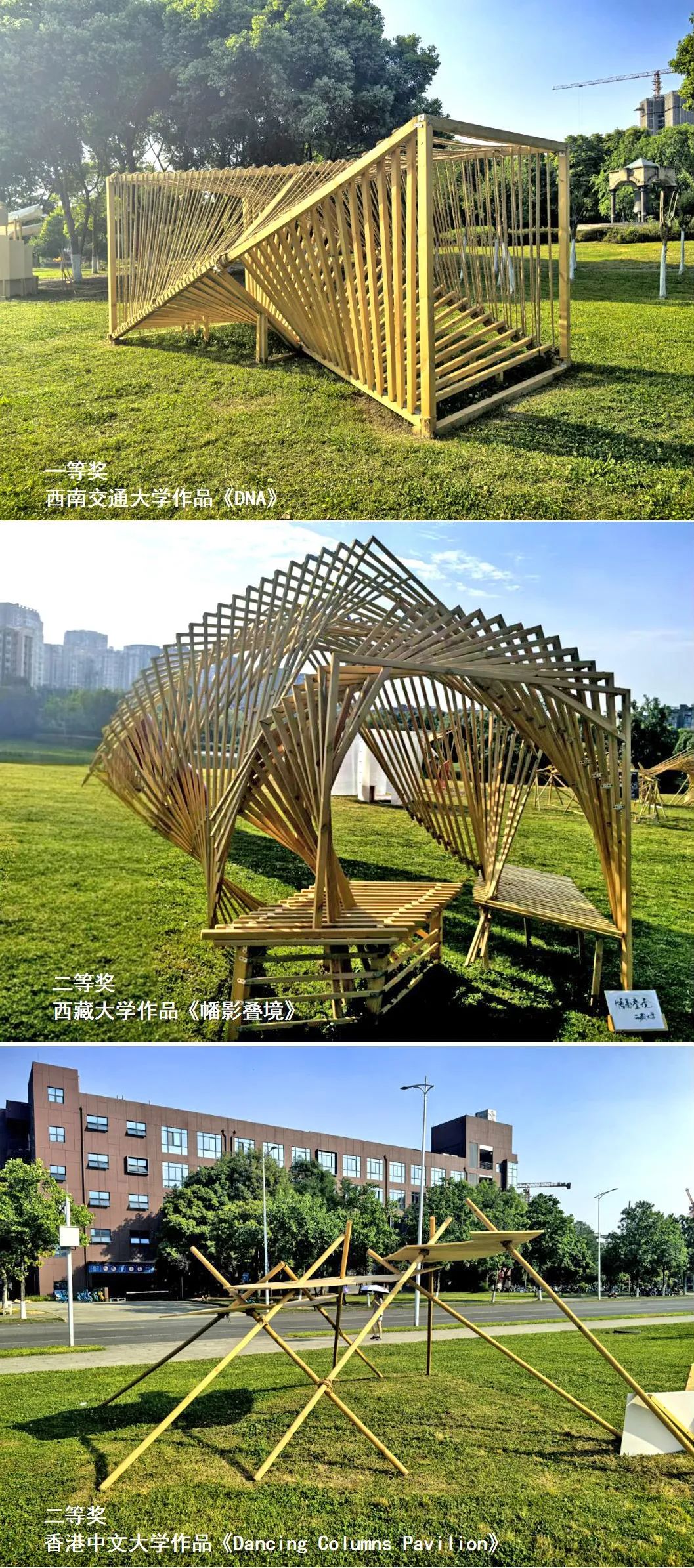 作品《DNA》荣获一等奖;西藏大学作品《幡影叠境》;香港中文大学作品《Dancing Columns Pavilion》荣获二等奖;九色视频