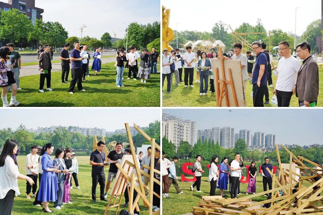 开幕式后,评审环节随即展开。各参赛团队围绕“AI驿站”主题,展示了他们精心设计的建筑作品。评审过程中,郑勇总建筑师代表评审团对参赛作品进行了点评。他称赞所有作品均展现出极高的创意和水平。郑勇特别提到,同学们在构思上紧密扣题,材料运用有特点,尽管面临五月份炎热和暴雨的挑战,仍能坚持完成作品,这种精神值得赞赏。同时,他也指出,部分作品在受力原理清晰度、材料运用和最终呈现度上仍有提升空间,希望同学们在未来的创作中继续探索和创新。
