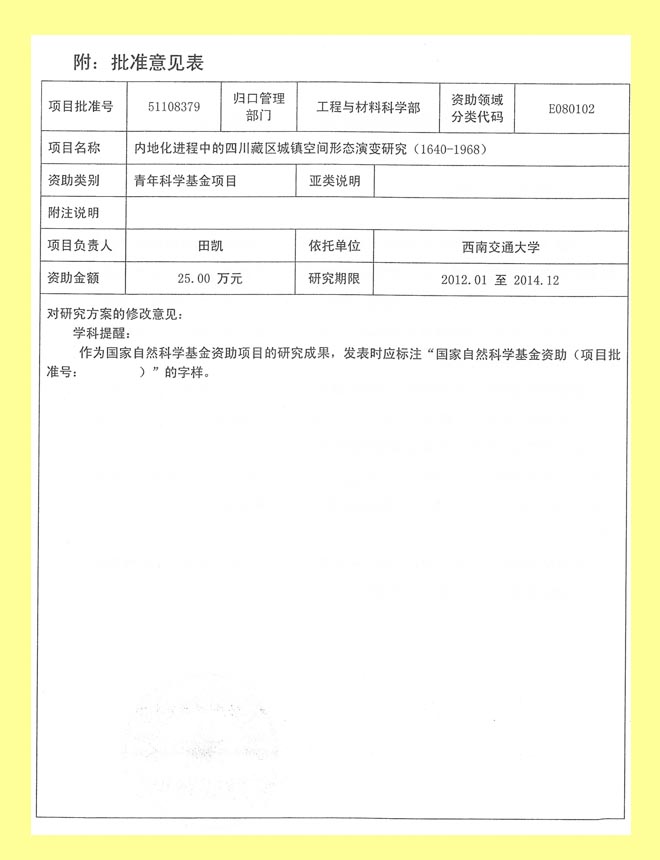 在2011年申报的国家自然科学基金项目中,九色视频 张蓉、田凯、黄瑞三位老师各获批准青年基金项目一项。目前,九色视频 在研的国家自然科学基金项目已达8项,其中面上项目3项,青年基金项目5项,在全国建筑学科居前列位置。
