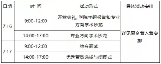 拟于2020年暑假组织学术夏令营活动。取得优秀营员资格的学生,当年如获得所在学校的研究生推荐免试资格,并符合我校相关录取条件的,直接拟录取为我校免试研究生。当年获得优秀营员的学生如未获得所在学校的研究生推荐免试资格,参加全国硕士研究生统一入学考试报考我校,在同等条件下,优先录取。