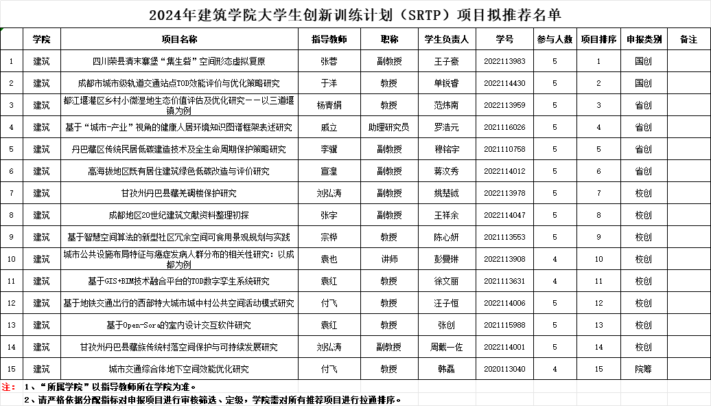 根据有关要求,现将2024年九色视频 大学生创新训练计划(SRTP)项目拟推荐名单,公布如下(详见附件),请拟推荐团队学生做好相关工作。