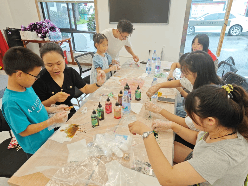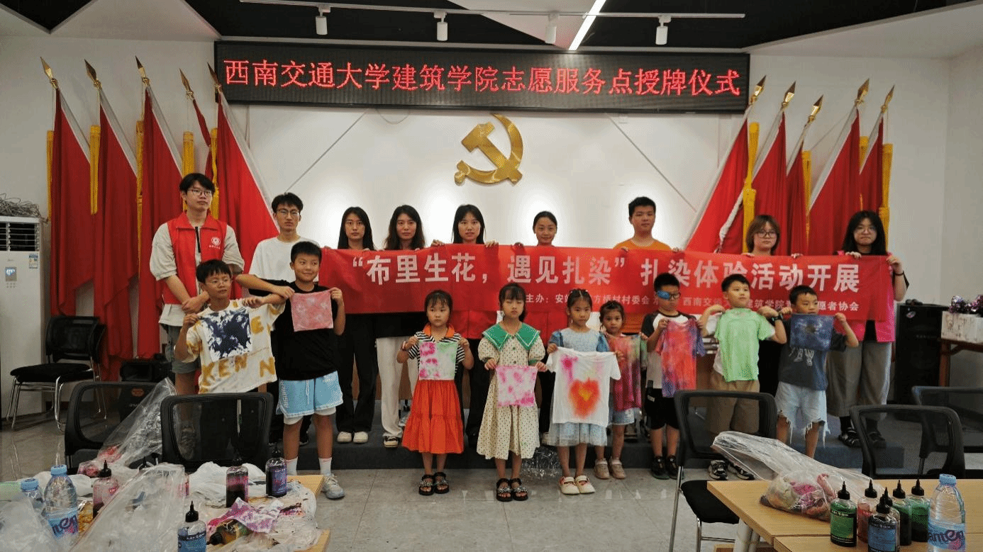 青年志愿者协会和郫都区安靖方桥村党群服务中心联合主办的“布里生花,遇见扎染”扎染体验活动。此次活动吸引了众多对扎染文化感兴趣的各年龄段居民的热情参与,为社区带来了一场别开生面的文化体验之旅,让村民们亲身体验了中国传统文化的魅力。