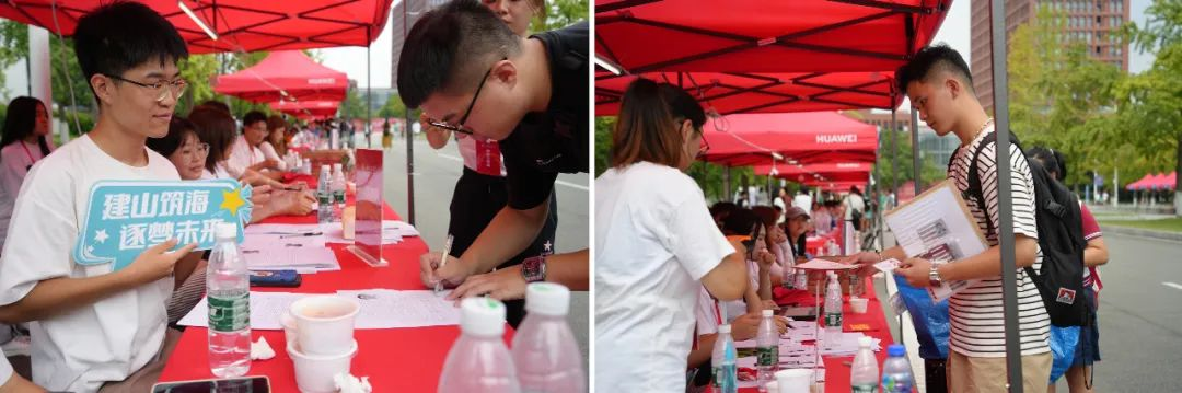 迎新手续办理点,进行资格审查、录取通知书提交、身份核验、党团关系转接等事宜,领取新生大礼包后由迎新志愿者和班协指引,步行或乘坐校内交通车至宿舍。各个环节紧紧相扣,开展顺利,有条不紊。