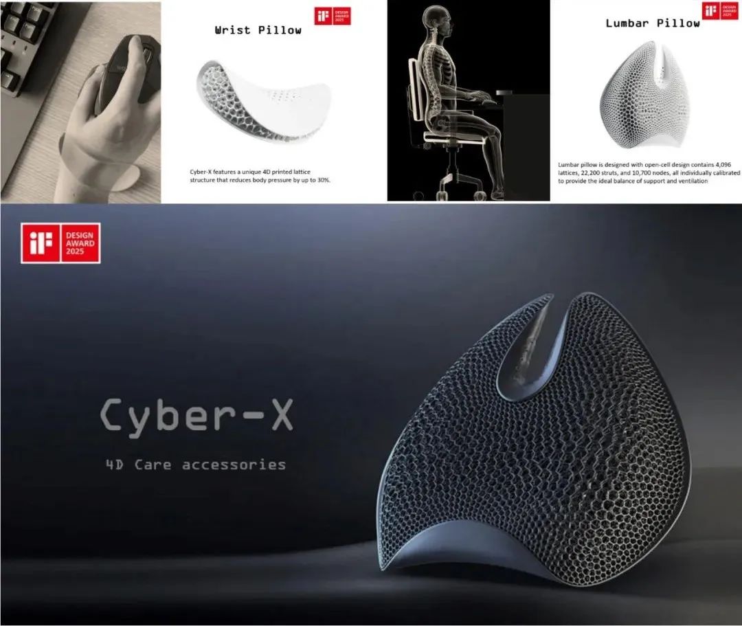 另一系列作品《Cyber-X》则尝试将4D打印技术与健康需求结合,开发出兼具功能性与美感的医疗辅具系列,为科技与艺术的交叉创新提供了新思路。