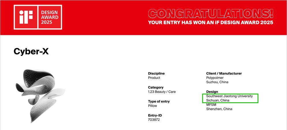 德国iF设计奖素以“创新性、实用性、美学价值与社会意义”为评审核心,其权威性为全球设计界所公认。学院近年来积极支持师生参与此类国际赛事,将竞赛作为检验教学成果、拓宽学术视野的重要途径。此次获奖既是对师生专业能力的肯定,也反映了学院在艺术设计人才培养中的务实探索。两项国际大奖的获得,不仅是师生团队努力的成果,也为中国艺术设计教育的国际化发展提供了实践参考。在艺术与科技交融的时代,脚踏实地、专注创新的教育理念,正逐渐结出丰硕果实。