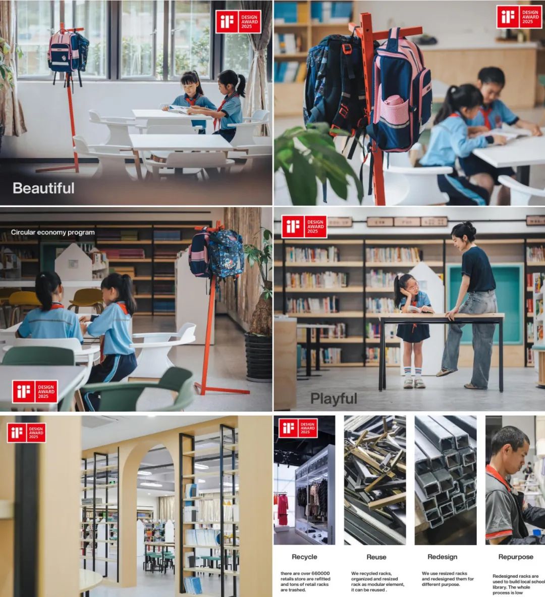 美术系舒兴川老师长期致力于可持续设计、公共艺术与科技融合等领域的教学与研究。注重将学术探索与课堂实践结合,通过教学引导学生从社会需求出发,探索艺术设计的多元可能性。此次获奖的两项作品,均源于近年来的研究与社会实践,体现了先进的教学理念与实践融合创新。学院近年来持续推动建筑、艺术与技术的跨学科融合,鼓励师生通过实际项目检验设计理念。舒兴川老师团队与清华大学许正龙教授在过去六年里,依托 “中国成都﹒和合之道国际公共艺术创作营” 的策划与运营过程中,将可持续理念深入服务社会。以《SHIFT》项目为例,舒兴川和时晓曦团队联合清华大学、MFSM研究中心、SUNTOP等机构,历时4年对废弃货架进行改造升级,将其转化为低碳图书馆的模块化家具,既实现资源循环利用,又赋予公共空间艺术美感。