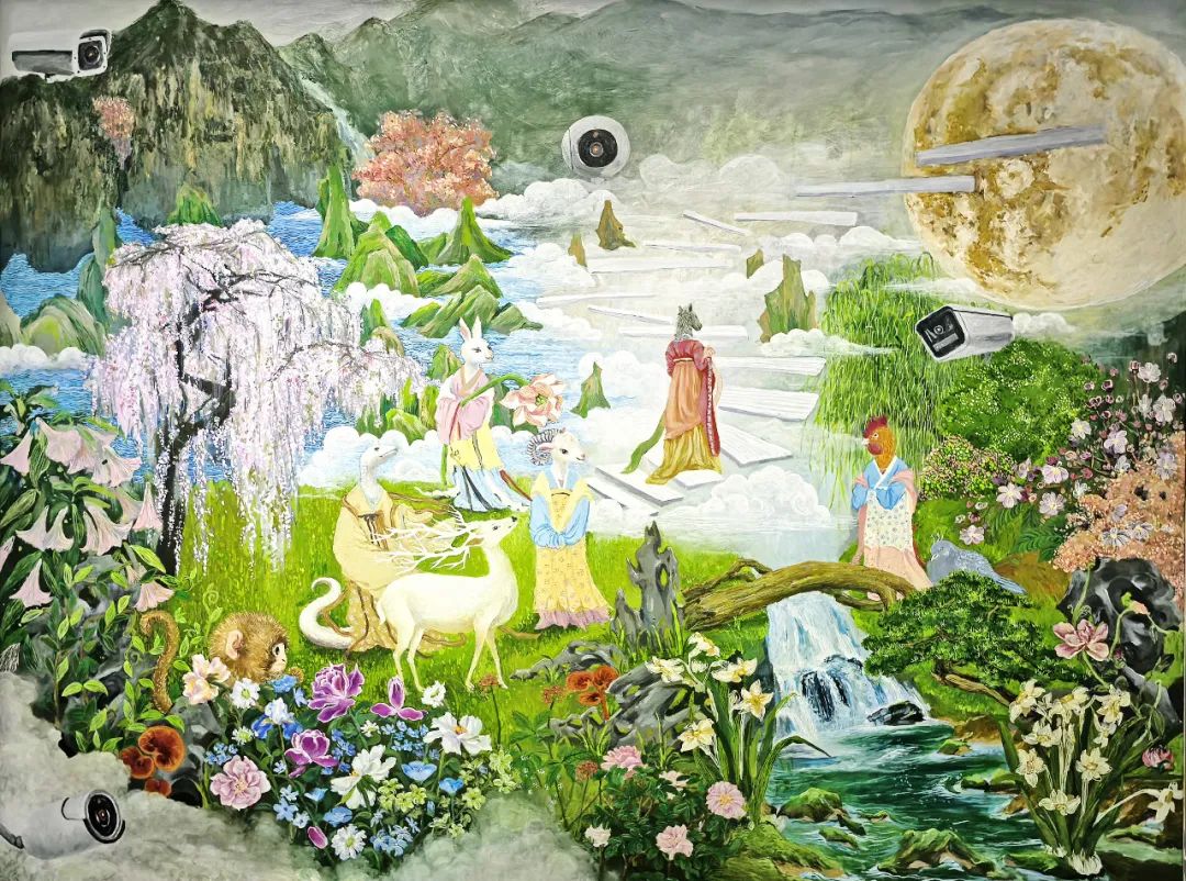 特别值得关注的是绘画专业同学们的作品,以水墨、油画、综合材料等媒介展开创作。这些作品不仅丰富了校园美育资源,更通过公共艺术装置等形式,将美术馆空间转化为开放的美育课堂。