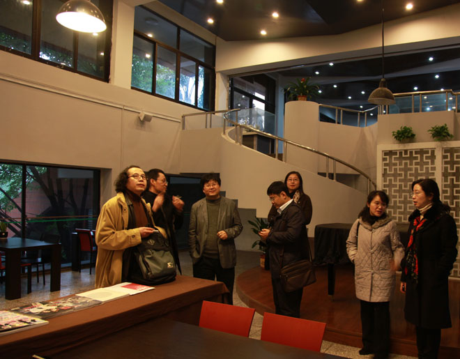 领导一行,参观了重庆大学建筑城规学院教学、图书、实验、交流空间,馆内专业工具售卖点等服务空间和重庆大学城市规划设计研究院。随后,两学院领导和部分重庆大学建筑城规学院教师,在建筑城规学院师生交流场所“3A空间”进行了广泛的交流。