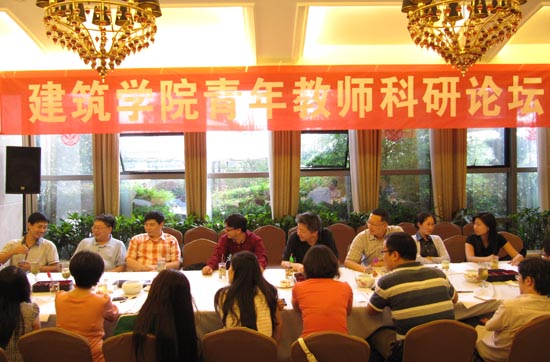 董靓教授对与会青年教师开展了科研工作专题辅导。作为国家自然科学基金会评专家,董教授指出,申报国家自然科学基金项目,最关键的,是项目的创新型,在此前提下,要具备必要的研究基础。年轻老师们要有目标,抓住一个问题,几百年一时得不到基金资助,也可以积极地做下去,逐步形成积累。在回答青年老师提出的关于生活和科研如何协调的问题时,董教授提出,我们的专业本身就是对生活环境的创造,关注生活是做好人居环境设计的前提。老师们应注意避免“被动科研”,争取“简单、平衡、包容”的生活状态。