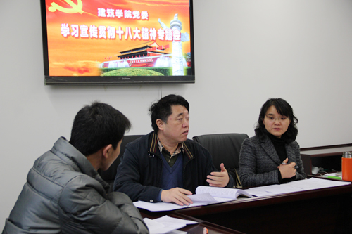 党委在犀浦校区学院第一会议室召开了“学习宣传贯彻十八大精神专题会”。学院党委书记王志杰教授、党委副书记栗民副教授出席本次会议,辅导员段玉全老师以及学院研究生、本科生党员干部参加了本次专题会,会议由段玉全老师主持。