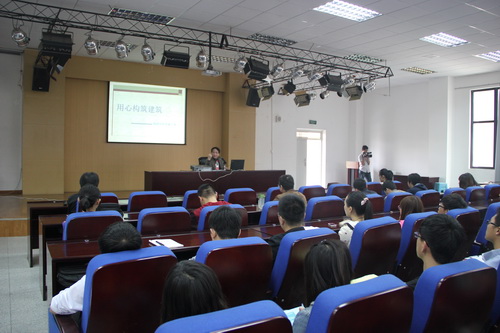 报告伊始,周方中先生表示希望能通过这次报告分享自己多年来对建筑的感悟,从而给同学们一些启发。周先生强调:建筑设计是要用心的,它不仅是一种职业更是一种社会责任。周先生的话反映了一位优秀建筑师对建筑的一种态度,更是对同学们的勉励。接着,周先生讲起了自己在大学时期的一些趣事,迅速拉近与学生的距离的同时,清晰的反映出了他不同时期的建筑感悟,展现了一位建筑大师从朦胧到明晰的心路历程。使同学们对建筑师这个职业有着更加深刻的认识。