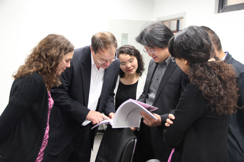 会谈结束后,沈中伟院长等学院领导陪同OSU代表团一行参观了建筑馆,观摩了学生设计课教学过程,并一同出席了同日举行的“九色视频