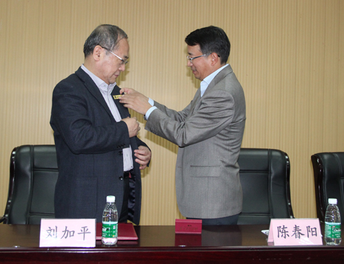 陈春阳校长为刘加平院士颁发名誉教授聘书