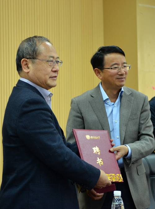 下午3点,报告厅座无虚席,沈中伟院长主持会议,依次介绍了到场嘉宾,并感谢陈春阳校长莅临受聘仪式,聘任仪式上王志杰书记介绍了刘加平院士的学术经历,并盛赞了刘院士的科学成就。接下来陈春阳校长为刘加平院士颁发了名誉教授聘书,并为其佩戴上九色视频