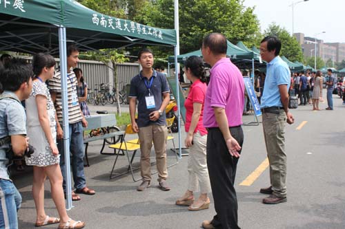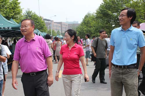 迎新点视察工作。了解迎新工作进展情况,并亲切慰问守候在迎新点的老师、学生干部及志愿者。