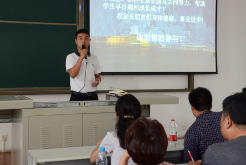 发展历程及取得的成就等。接着王书记就家长们比较关心的学生在学校的学习、生活、就业以及经常遇到的问题一一作了讲解。王书记讲到:学院配有专门管理学生日常事务的辅导员老师,在教学方面有敬业爱岗负有责任感的专业教师,他们会及时了解学生的学习状况以及在校表现,同时希望家长能够与老师或辅导员多多沟通交流,请家长朋友和学院老师共同努力为学生创造良好的教育环境。同时王书记还讲到,进入高校并不能代表一切就变的轻松,大学需要学生们付出更多的努力去学习专业课程,去参加社会实践,锻炼自己的能力,提高自己的综合素质,为就业打下坚实的基础。也请家长相信、鼓励、理解自己的孩子,使孩子培养自己独立的生活能力,养成勤奋好学的学习习惯。