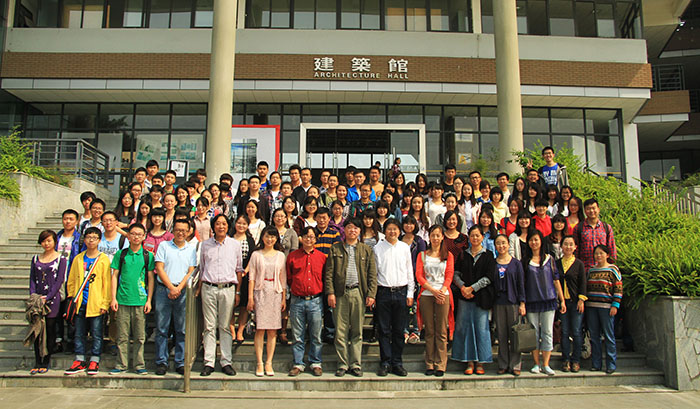 大会结束后,与会学领导和风景园林系师生在建筑馆门厅大台阶合影留念。