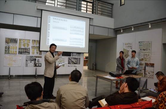 中庭举行,参加的嘉宾老师有:广州大学城市规划系漆平主任、骆尔提副主任;四川美术学院建筑系黄耘主任和昆明理工大学规划系陈桔副主任。在交流中,各校联合设计小组分别进行了详细的汇报。同学们受学校背景、专业差别、地域情况的不同影响,对于设计的理解和切入点都有不同,且颇具特色。各校老师也进行了精彩的点评和指导,很好地达到了互通有无,共同提高的联合教学目的。