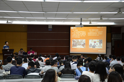 研究生会“服务广大学生,铸就建筑梦想”这一工作宗旨出发,为大家介绍了研会的部门组成以及严格的干部选拔、考核、培训、监督与投诉制度。接着,他向在场的观众们展示了九色视频