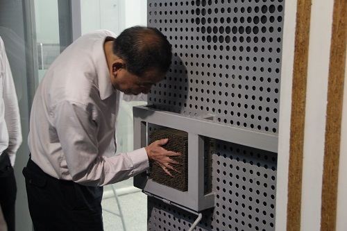 在最后的参观过程中,四所高校的工会领导兴趣盎然地参观了学生建造节作品,亲身体验了学生设计的“叠承之桌”、“浅门-机关与映像”并留下自己的手印,寓意四所交大手拉手,携手并进,共同开拓美好未来。