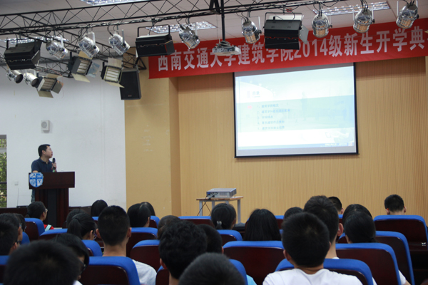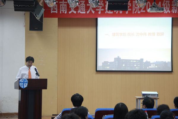 2014级新生开学典礼暨师生见面会在建筑馆学术报告厅隆重举行。学院党委书记王志杰、院长沈中伟、党委副书记栗民、副院长崔珩、副院长李异、院长助理崔叙、院长助理杨青娟,各系负责人、各班导师,全体辅导员及2014级全体本科生、研究生参加了开学典礼。典礼由王志杰书记主持。