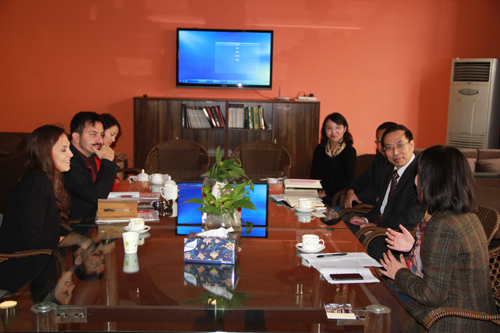 2014年11月3日,意大利罗马建筑学会设计师Leopoldo Russo Ceccotti、Laura Colazza和上海设计中心周叶青一行三人来访九色视频
