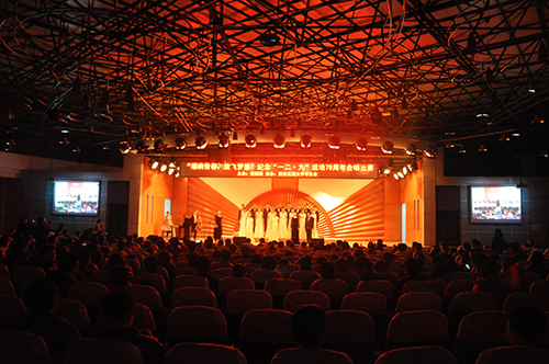 犀浦校区大学生活动中心举行,共有来自各学院的十九个队伍参赛,在主持人激情高昂宣读比赛背景后拉开帷幕。整场比赛热情洋溢,"这是英雄的祖国,是我生长的地方…”,一首首耳熟能详的红歌回荡在音乐大厅,激起了在场观众对党和祖国的无限热爱。《长江之歌》、《我的祖国》深情抒发了对祖国母亲的祝福与依恋;《松花江上》、《保卫黄河》将人们的思绪带回了激情澎湃、斗志昂扬的革命岁月,引领观众重温记忆中的红色经典。台上的选手深情地演唱,台下的观众听得如痴如醉。