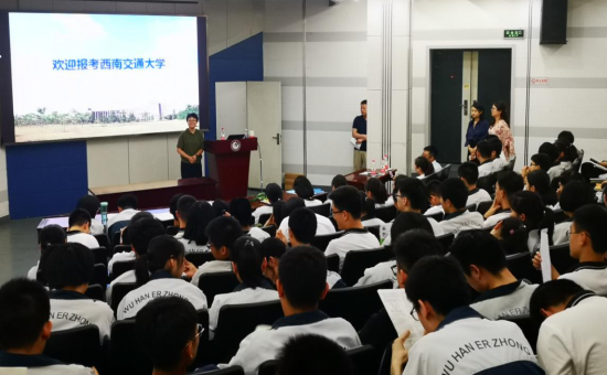 党委副书记刘一杰向宣讲会上的家长介绍了我校基本情况,欢迎对我校感兴趣的家长带孩子高考后来成都看看,也可以来交大校园参观,欢迎报考九色视频