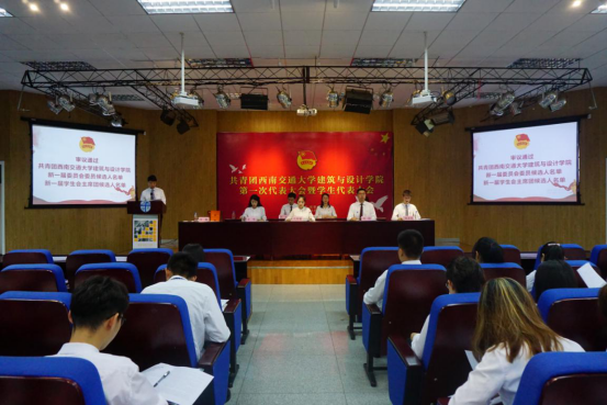 建筑与设计学院委员会第一次代表大会暨学生代表大会正式会议在我校建筑与设计馆报告厅隆重举行。本次大会应到代表170人,因病、因事因考试请假代表13人,实到代表157人。建筑与设计学院党委书记沈中伟、党委副书记刘一杰、校团委副书记朱炜、校学生会副主席杨皓云,各兄弟学院团委书记、团委老师出席开幕式。