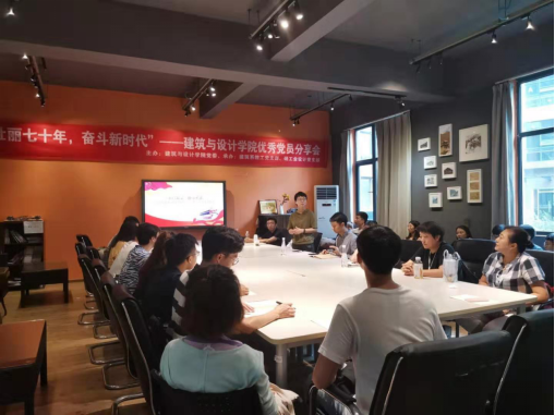 2019年9月12日下午1点,由建筑与设计学院党委主办,建筑系教工党支部、研工业设计党支部承办的“壮丽七十年,奋斗新时代”系列活动——建筑与设计学院优秀党员分享会在建筑文化中心举行。本次分享会由方翰老师主持,学院党委副书记刘一杰、建筑系党支部书记付飞、工业设计系党支部书记李芳宇、研究生辅导员杨珂以及近50名教师、学生党员参加本次会议。