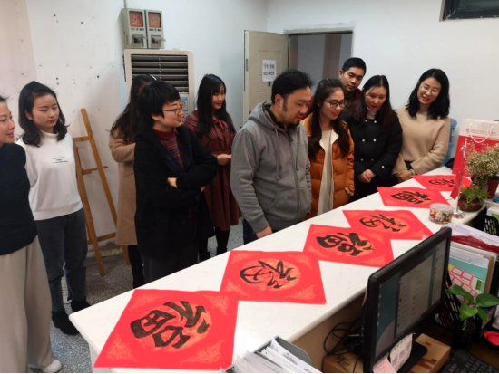 学生工作组举行了“筑·福”新春传统书法“福”字书写活动,党委副书记刘一杰,艺术设计系陈立民副教授担任评委,活动中评选出的优秀作品将作为新春祝福在随后的学生宿舍走访中赠送给同学们。