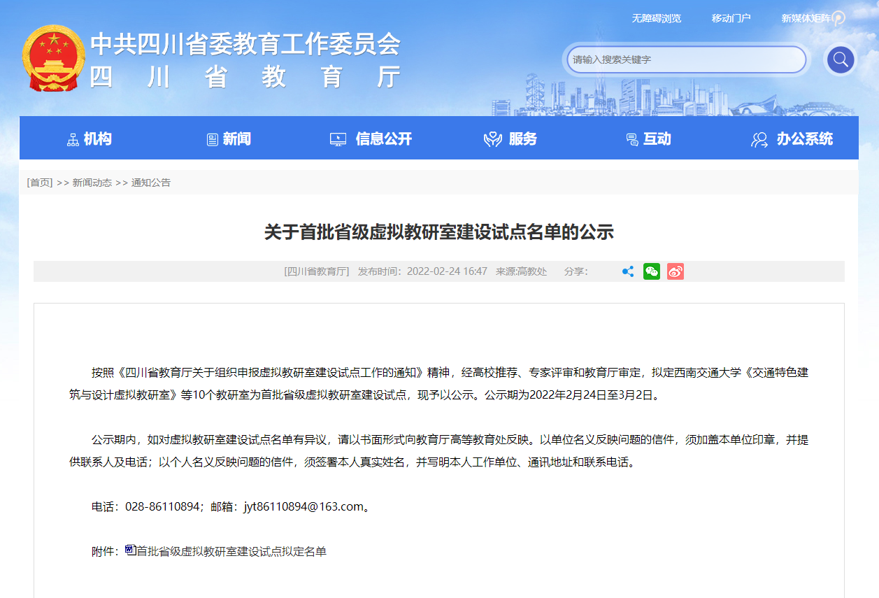 交通特色建筑与设计虚拟教研室成功成为首批建设试点之一,同时也是全校四个国家及省级建设点之一。