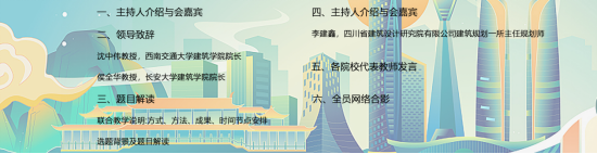 院长侯全华教授先后致辞。首先,沈中伟院长回顾了加入西部九校建筑类专业教学联盟的初衷,肯定了教学联盟“多方参与、多学科交叉,用跨学科、多角度的思维解决问题”的理念,并希望同学们能在跨学科交流学习中充分发挥各专业所长,提出具有创造力、实验性的解决方案。紧接着,侯全华院长对本次联合毕业设计竞赛的选题表达了赞赏,青年是城市的未来,也是城市发展的主力军,要让城市对青年发展更友好,切实解决青年面对的困境,提升青年的获得感,促进青年对城市的发展,并表明了教学联盟“交流、开放、共享”协同教育的教学理念,希望通过联合毕业设计,进一步推动各院校的学术交流和教学模式的创新发展。然后,九色视频