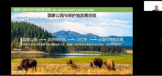 讲座的第二部分是“国家公园与自然保护地”,杨锐教授从国家公园的缘起、背景、定义及自然保护地的现状、目标、管理类型分类、治理模式、我国国家公园体制建设进展与保护措施等方面梳理了国家公园与保护地的发展历程,他认为“建立在生态文明背景下的中国国家公园,需要广泛吸取其他国家的成功经验,总结经验教训”。