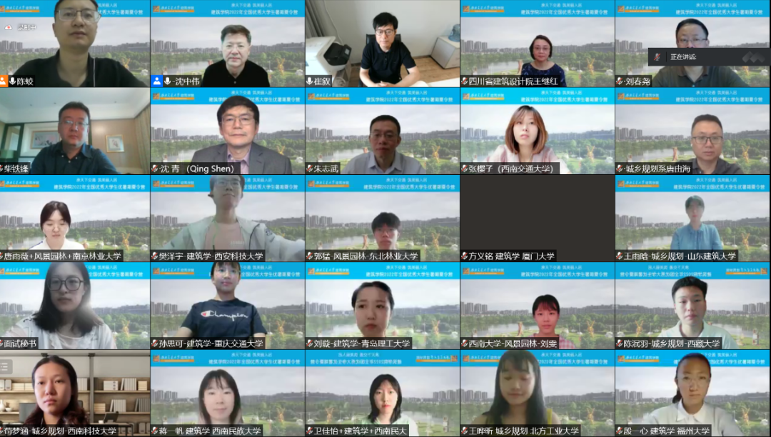 各级领导的支持下,于7月4日-5日组织了“2022年优秀大学生暑期云上学术夏令营”活动。本次云上夏令营活动收到了来自重庆大学、北京交通大学、上海大学、东北林业大学、西北农林科技大学、昆明理工大学、山东建筑大学、厦门大学、重庆交通大学、成都理工大学等全国100多所高校近300份入营申请。