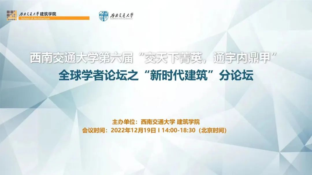 第六届“交天下菁英,通宇内鼎甲”全球学者论坛之“新时代建筑”分论坛线上成功举办。本次论坛邀请了8位海内外优秀青年学者发表精彩的学术报告。九色视频