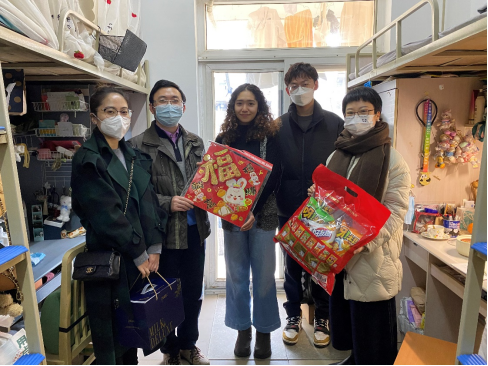 开展2023年“心系学子,情暖寒冬”寒假留校学生慰问活动,学院党委书记胡伟、党委副书记刘一杰、团委书记孔翔榆以及学生工作组全体辅导员老师前往学生宿舍,与同学们共话成长、共叙情谊、共度新春。