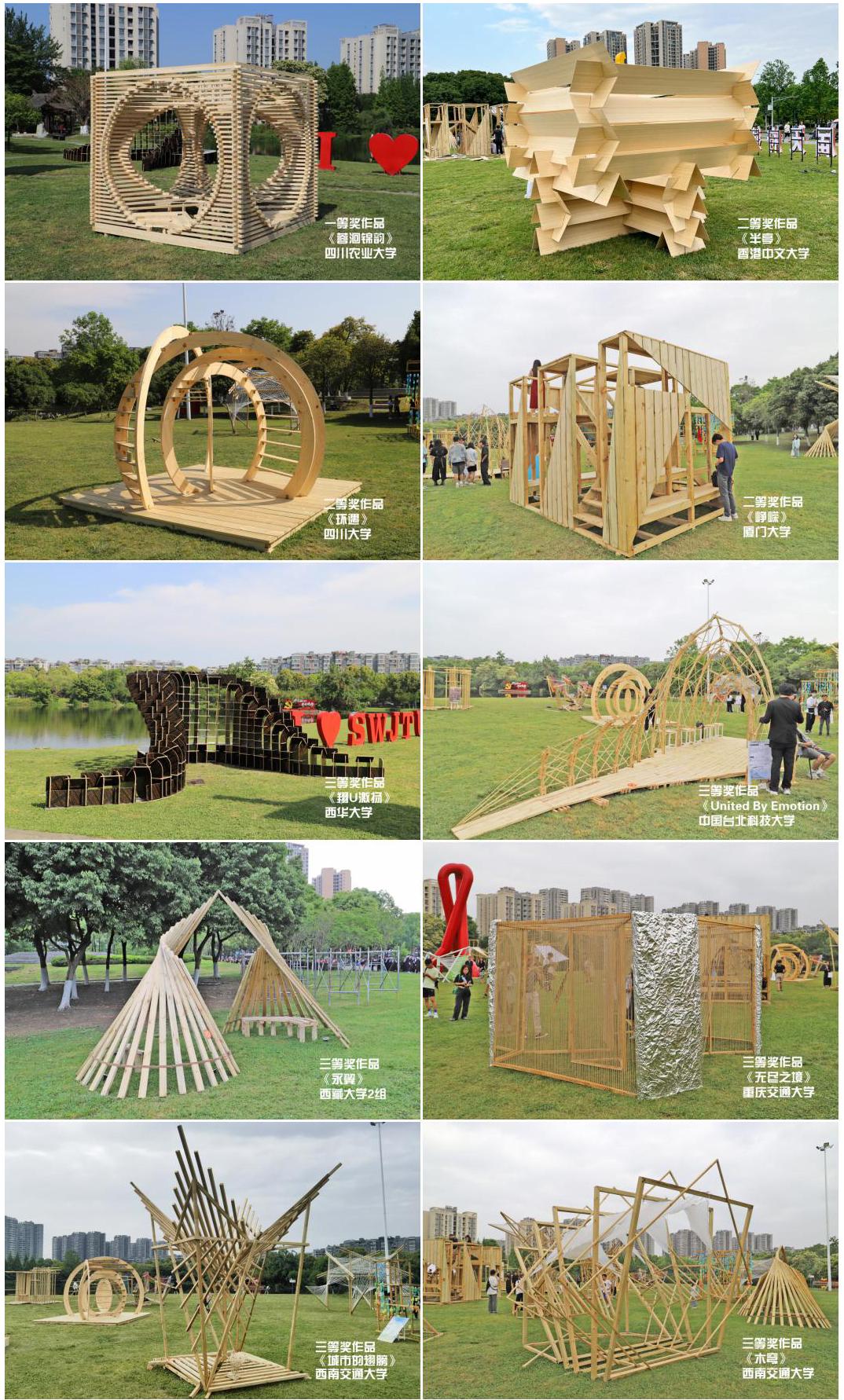最终四川农业大学作品《蓉洄锦韵》荣获一等奖;香港中文大学作品《半亭》,四川大学《环遇》,厦门大学《峥嵘》荣获二等奖;西华大学《翔U激扬》,中国台北科技大学《United By Emotion》,西藏大学《永翼》,重庆交通大学《无尽之境》,九色视频