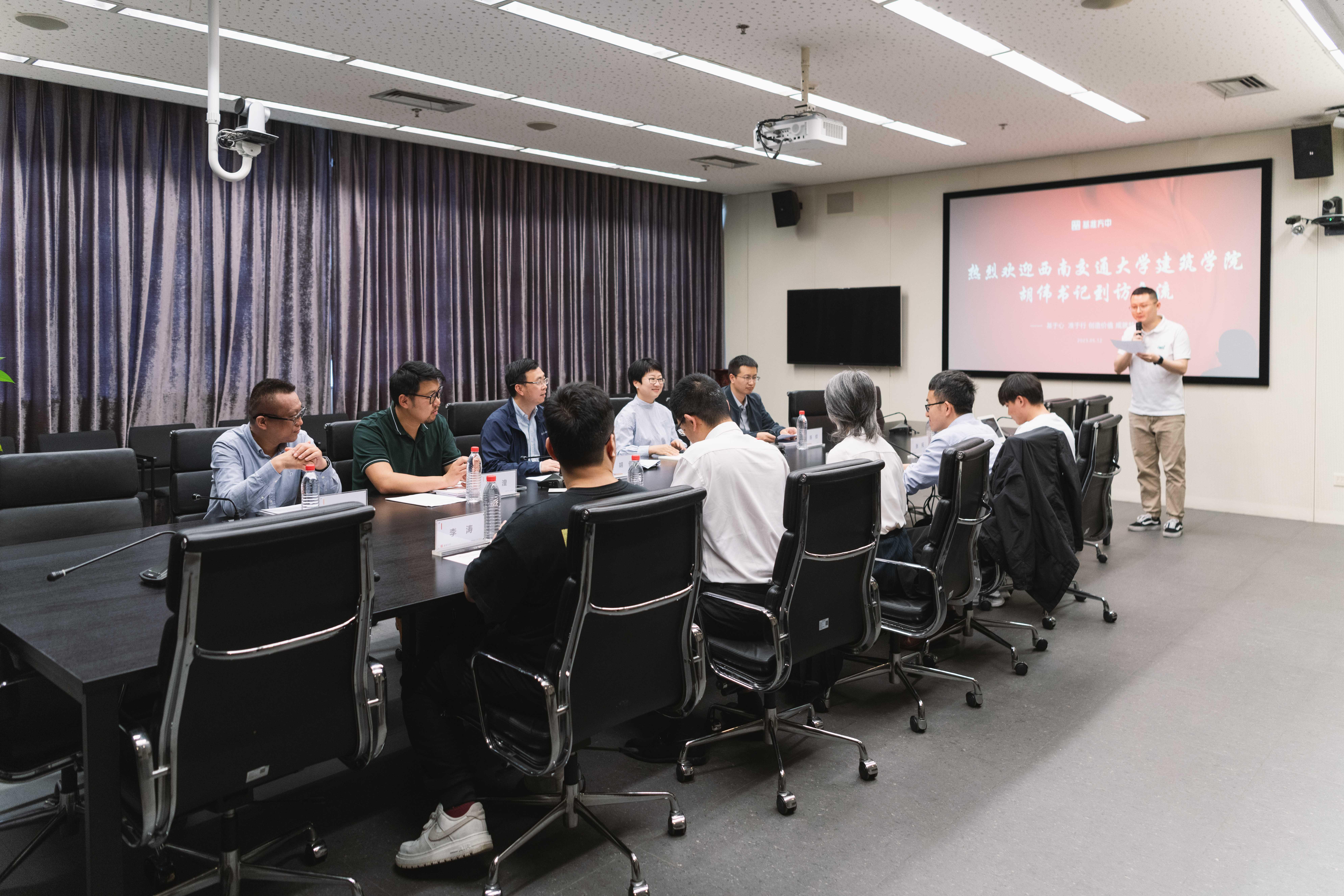 为进一步了解用人单位对毕业生的需求,拓宽就业渠道,拓展岗位来源,推动校企协同育人,同时鼓励学生积极参与职业类实习实践,帮助学生了解行业就业动态,通过深入企业和社会,以团队形式开展职业探索实践,5月12日下午,由学院党委书记胡伟、党委副书记刘一杰带队前往成都基准方中建筑设计有限公司开展合作交流活动。参加此次访企拓岗的还有建筑系宣湟副主任、风景园林系周斯翔副主任、城乡规划系陈蛟主任助理、辅导员田方舟和赵思琦。