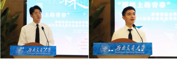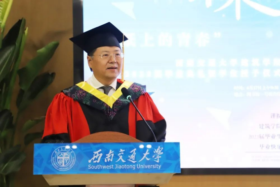 本科毕业生代表高建一和研究生代表唐祥龙同学发言中,代表全体2023届毕业生,向精心培育我们的学院和老师表示衷心的感谢,感谢学院为我们提供了一个开放、创新、包容的学术氛围,让我们身临其境的感受建筑、规划、景观和美术的魅力和挑战,激发了我们对建筑艺术的热爱、探索,培养我们丰富的实践经验和广阔的视野。未来我们必将秉持初心,坚定信念,怀揣感恩,拥抱希望,牢记“精勤求学,敦笃励志,果毅力行,忠恕任事”的交大校训,发扬“竢实扬华,自强不息”的交大精神,勇敢的迈向美好的未来,为祖国发展做出我们自己的贡献!