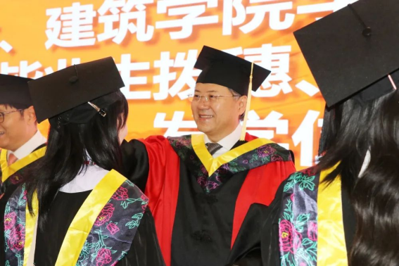 执行院长沈中伟教授致辞中指出毕业典礼和学位授仪式是每一位在校的毕业生人生中最难忘的时刻,这一刻即将开启自己的事业人生。沈院长还在致辞中嘱托毕业生们四点希望:一是要学会两眼“发光”,学会用积极的态度看待一切。要树立正确的人生观、事业观,价值观,要以积极的心态投入到社会中。要以学院多年培养所形成的修养、礼仪、能力积极对待世界,解决问题,必须良好的心态面对任何困难。二是要仰望星空,在每一个时间节点上,都应该给自己目标,没有理想人就会消极,在理想与追求之下,我们永远会有积极的态度去开创未来。三是要脚踏实地,要做到言行一致,笃行致远。我们为什么学习建筑构造,我们为什么要有建造节,就是同学们把自己的理想所学的理论投入到实践,理论结合实际,尽精微,方能致广大。四是一定要品行端正,要做到问心无愧,人生是漫长的,在未来工作的30-40年。我们不能有半点虚假,不能投机取巧,也不能华而不实。所以,品行端正是成就人生最重要的一个法宝。最后就是在利益面前要有大局,在困难面前要有担当,在矛盾面前要有胸怀,这也是我的人生观。希望我们在座的同学们能够成为一名优秀的九色视频