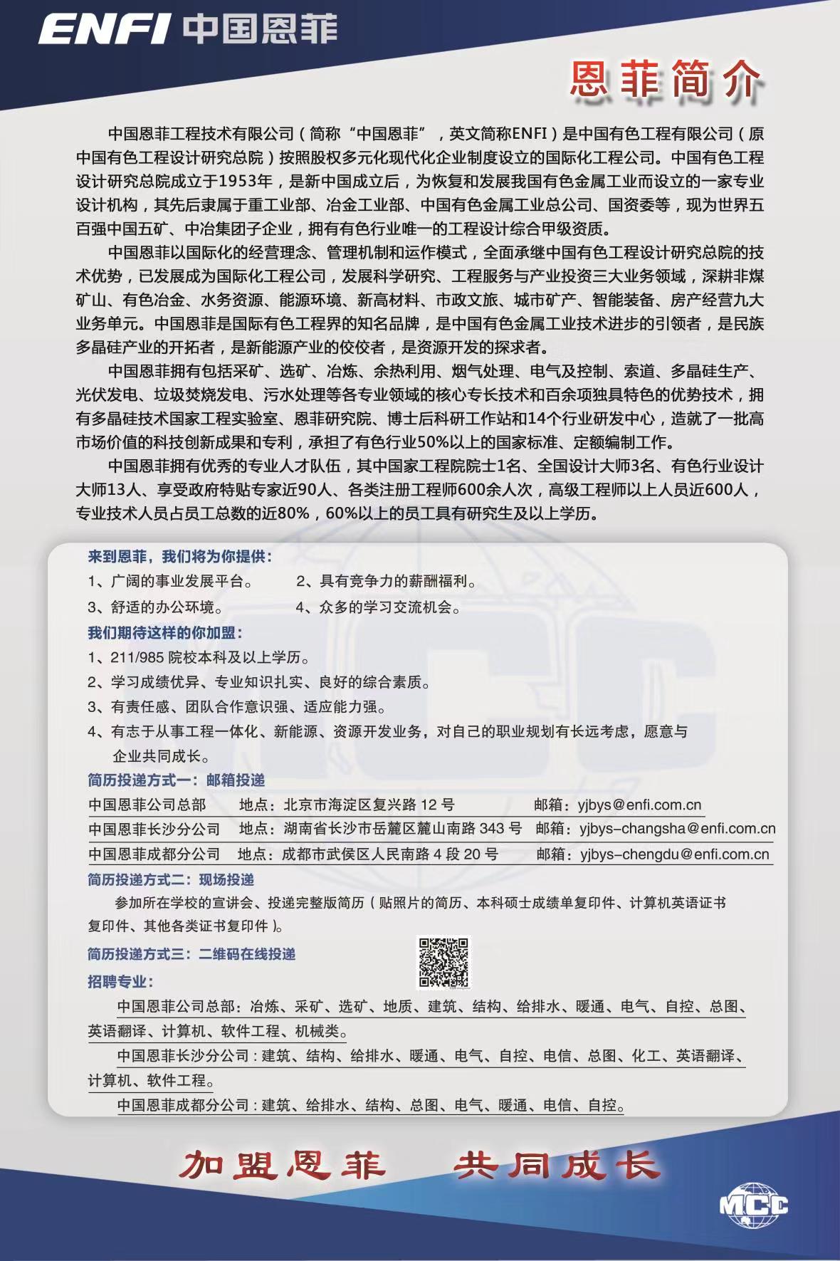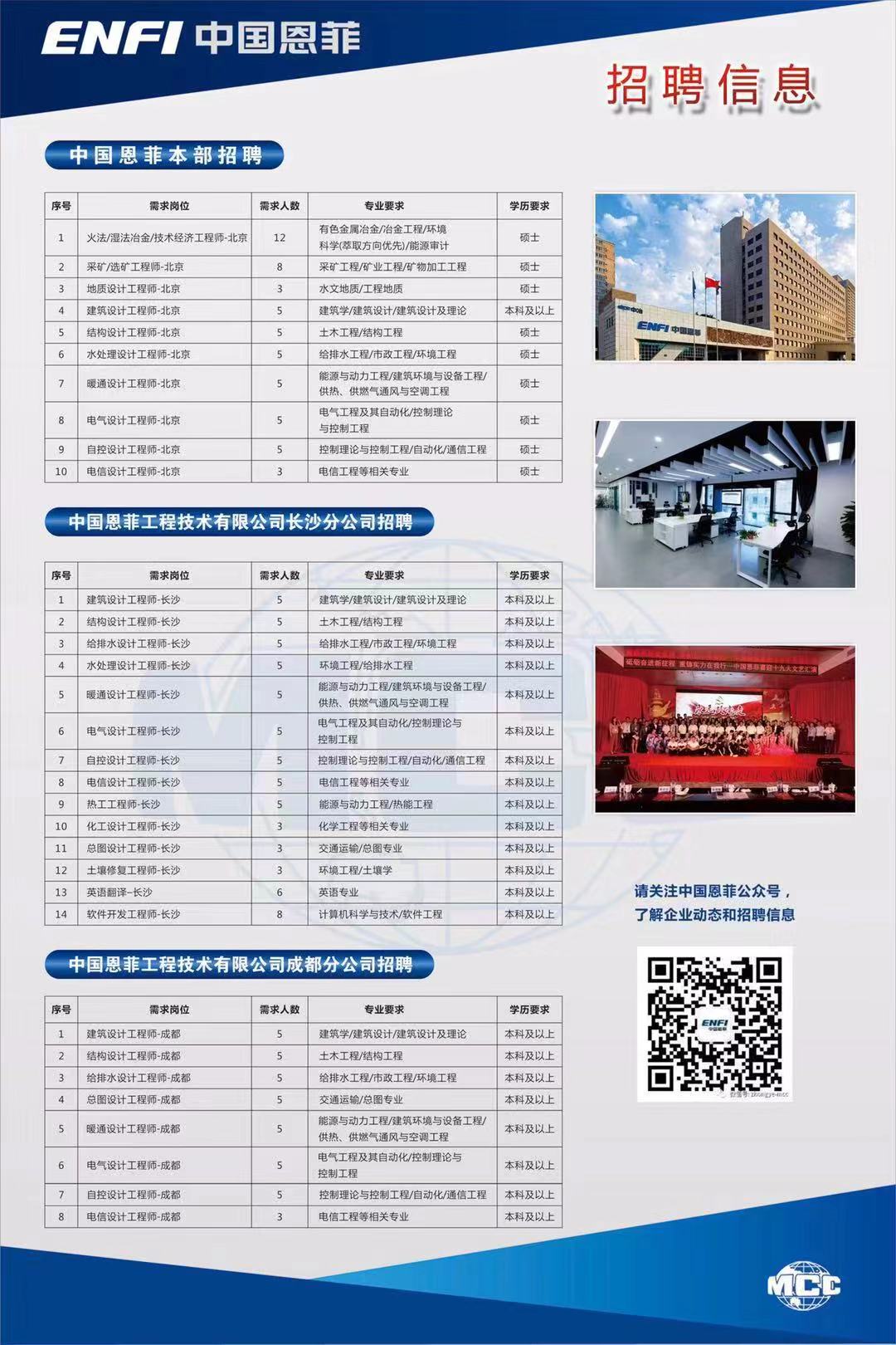 【招聘简章】中国恩菲工程技术有限公司2019招聘