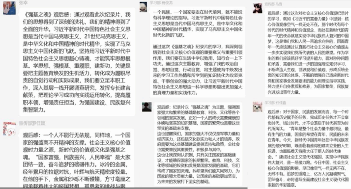 接着,在团支书的引导下,同学们纷纷就刚才的纪录片的心得感悟进行了分享。同学们表示通过这次《强基之魂》纪录片的学习,深刻领悟到了社会主义核心价值观的重要意义,并表示要努力提升自身素质和修养,在未来学习和工作中将理论与实践相结合。