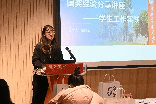 犀浦校区第八教学楼 A100报告厅顺利举办。本次讲座邀请到了三位国奖获得者,分别是城乡规划的杨皓森同学、建筑的黄越同学以及城乡规划的诸静茹同学,为同学们分享他们的经验。