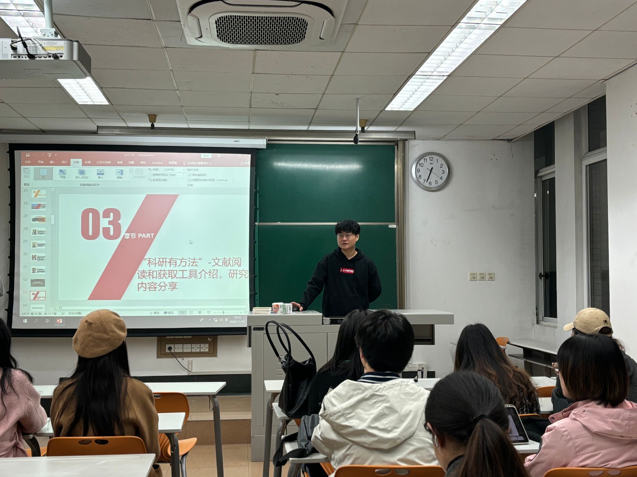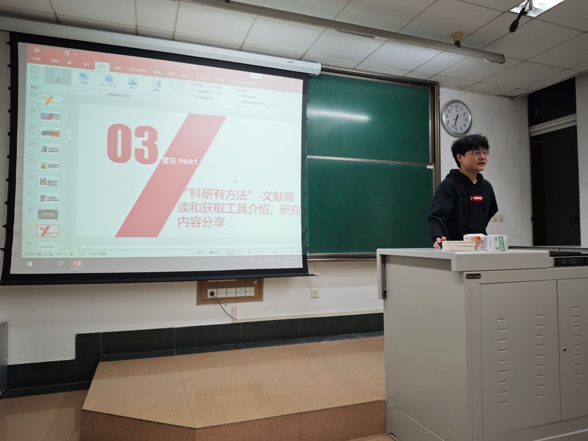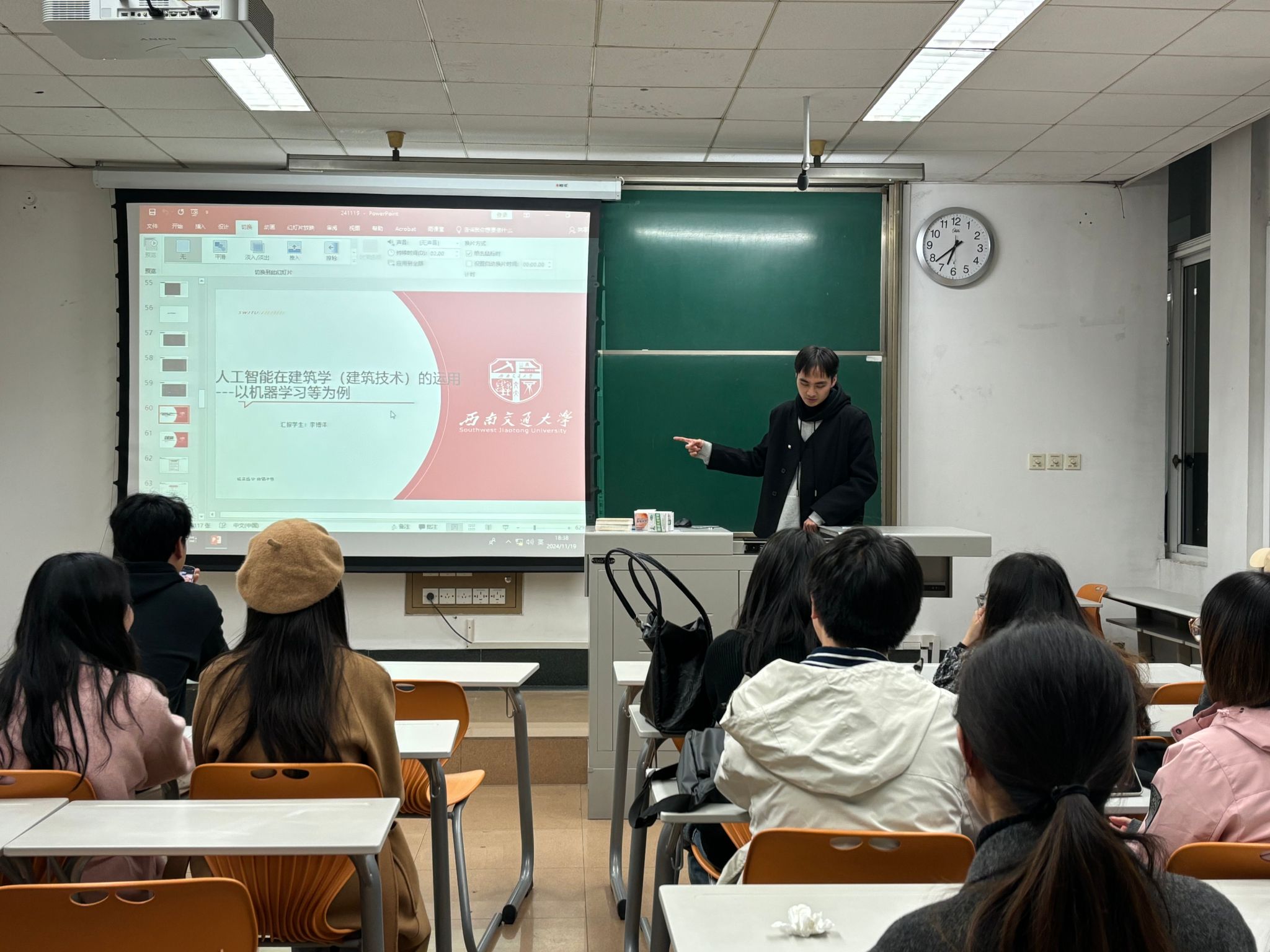 九里校区4教4221教室,结合研究生“红路”理论学讲团开展“赓续奋斗精神,厚植青年担当”主题宣讲活动,开展了本班的团日活动及学术素养和科研能力提升的班会交流分享。本次班会涵盖了四个重要主题:新时代青年的责任与担当、科研工具的分享以及人工智能在建筑技术中的应用。旨在增强研究生的爱国情怀,培养科学精神以及良好的学术道德风尚,同时,为促进班级积极学习氛围,以班长为首的几名班委依次分享了一些科研工具以及前沿科研技术,从而鼓励同学互相交流学习,寻找更多科研创新点。