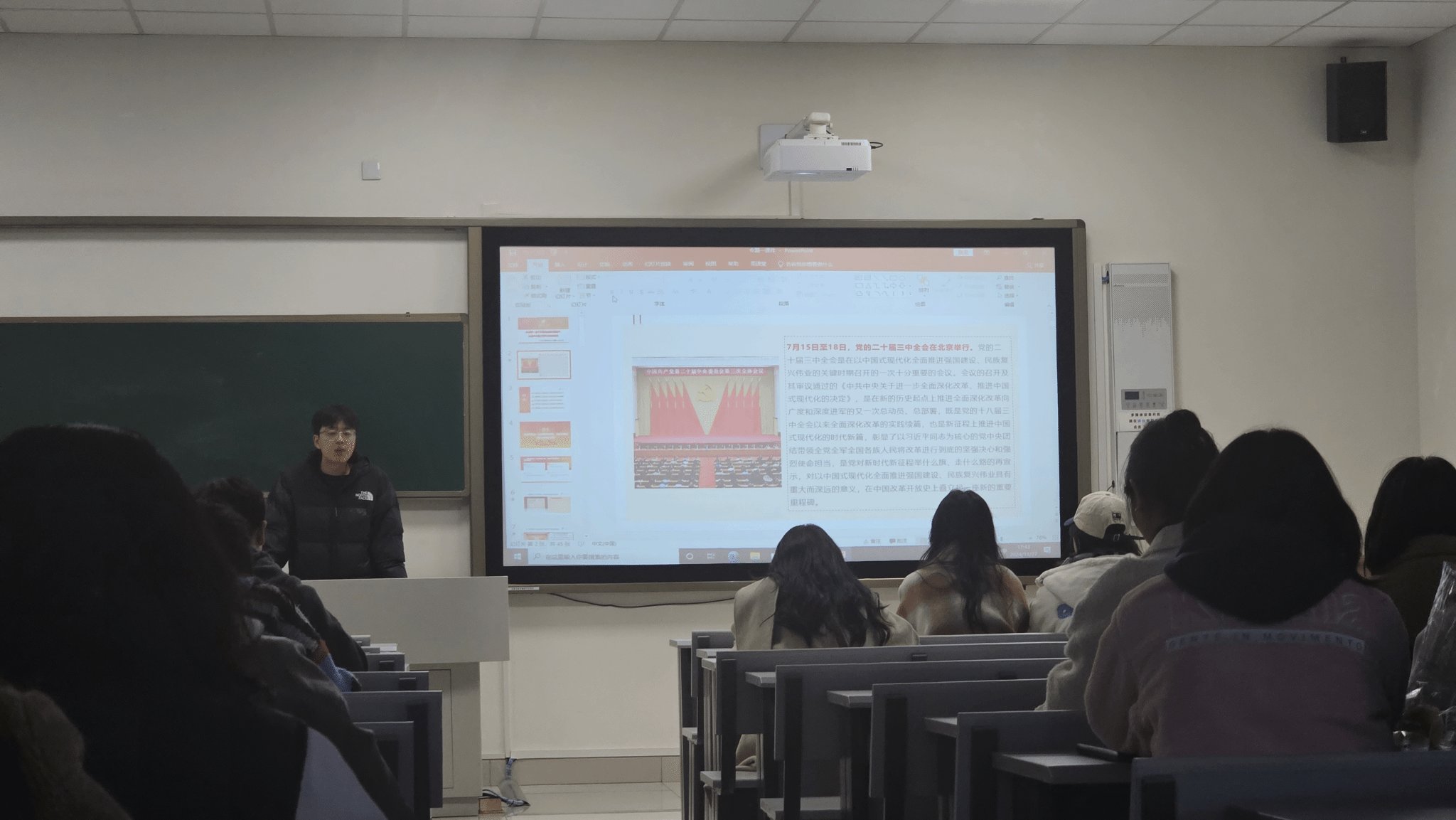 随后,王振世老师结合当下全球政治经济形势及中国的发展现实,深入分析了全面深化改革的迫切需求与时代背景。他指出,青年一代的研究生群体应当以更加积极的姿态,深入参与到国家改革事业当中,争做改革的推动者、引领者与创新者。王老师特别提到,作为国家未来的“栋梁”,研究生应以实践为基础,立足学术与科技创新,为中国式现代化贡献智慧与力量。