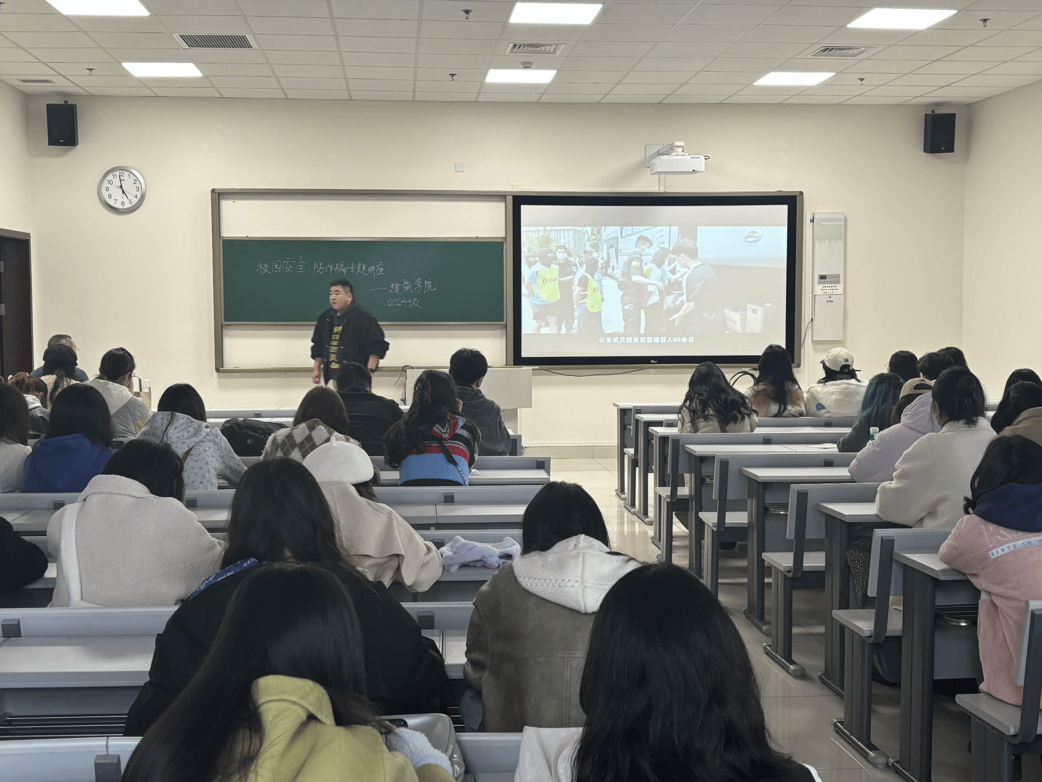 为全体研究生精心策划并成功举办了一场别开生面的消防安全与防诈骗系列专题讲座。此次讲座特别邀请了保卫处的李为群老师和曾轲老师,分别围绕校园安全和防诈骗两大核心议题,为研究生们带来了一场既实用又富有启发性的知识盛宴。