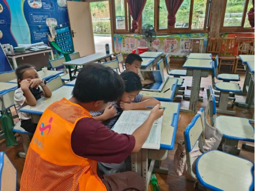 团队根据学生年龄特点,设计多层次课程体系:开展语文、数学、英语等学科教学,采用游戏化、情景式教学方法激发学习兴趣,同时开展暑期作业辅导,着力破解留守儿童假期“作业辅导难”问题;设置草木染手工、巧手愈心坊、折纸艺术等创意课程,培养学生动手能力与审美素养;每日保留集体劳动和体育活动时间,通过集体协作打扫卫生、篮球、跳绳等活动培养团队精神。