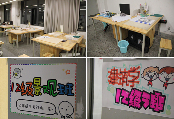 作为大一新生的同学们表示:我们虽不能立即投身祖国建设中,但是我们可以将十八大精神贯彻落实到我们的学习生活中。本次活动,各班一是对教室的卫生进行了彻底清理,同学们表示干净的教室不是在于经常的打扫清理,而是在于平时的保持,今后会更加要求自己努力维护好班级环境。二是对教室的布置按照自己的创意进行了重新规划,每个班级在墙壁上挂上了“党员示范岗”标牌、班级公示栏,有些教室设置了自然角、优秀作品展示角等。三是对桌椅的排列,根据班级教学和活动的需要排出便于师生之间交流、便于同学之间交流的模式。先进的班级不仅要具备“硬环境”的建设,同时要注重“软文化”的提升,班级“软文化”环境是班级文化环境的核心,能够展示班级风采、体现班级个性。景观班结合专业特色制作了展示班级魅力班徽,而建筑班正在编写属于自己的班歌。