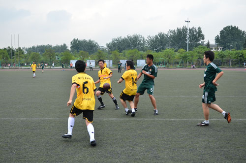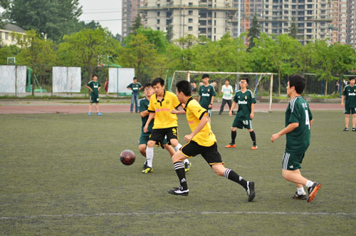 本科生足球小组赛在南区体育场举行。参加比赛的是12级建筑班和10级建筑班,这两支队伍的实力都不容小觑,前来观看与加油助威的同学们都早早来到体育场,期待着他们激烈的角逐。